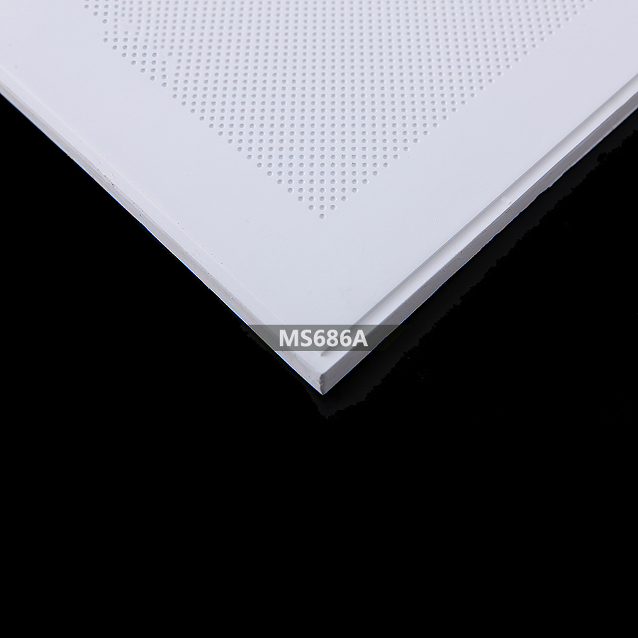 吸音天花通过与后部填充的材料空腔组成一个阻尼系统,声音的能量可以通过此系统将会得到逐步的衰减,从而达到吸音降噪的作用。吸音天花的穿孔率(从低穿孔率3.8%到高达30%的穿孔率)的多类型可以适用于吸收各种频段的噪音、穿孔直径和后部空腔深度容积的多样性,使它可以让使用者“因地制宜”,根据不同空间声音的频率的高低来选择不同式样的吸声板。