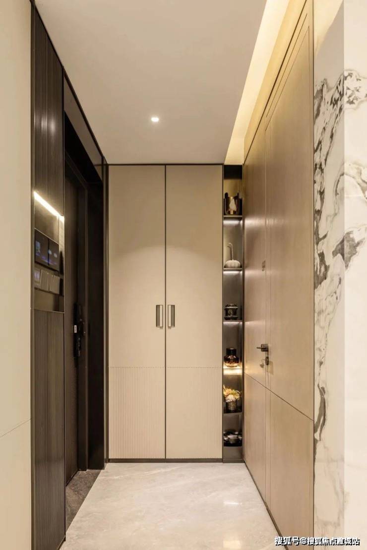 入户门采用手感厚重的铸铝装甲门+飞利浦智能锁高端系列产品;金茂定制柜设置了玄关造景金属壁龛柜,女王高靴放置区等,大气美观。整个户型属于真正的南北通透,且整体约3.1米层高,室内装修完依然有纵向舒适尺度,丝毫不会觉得压抑。