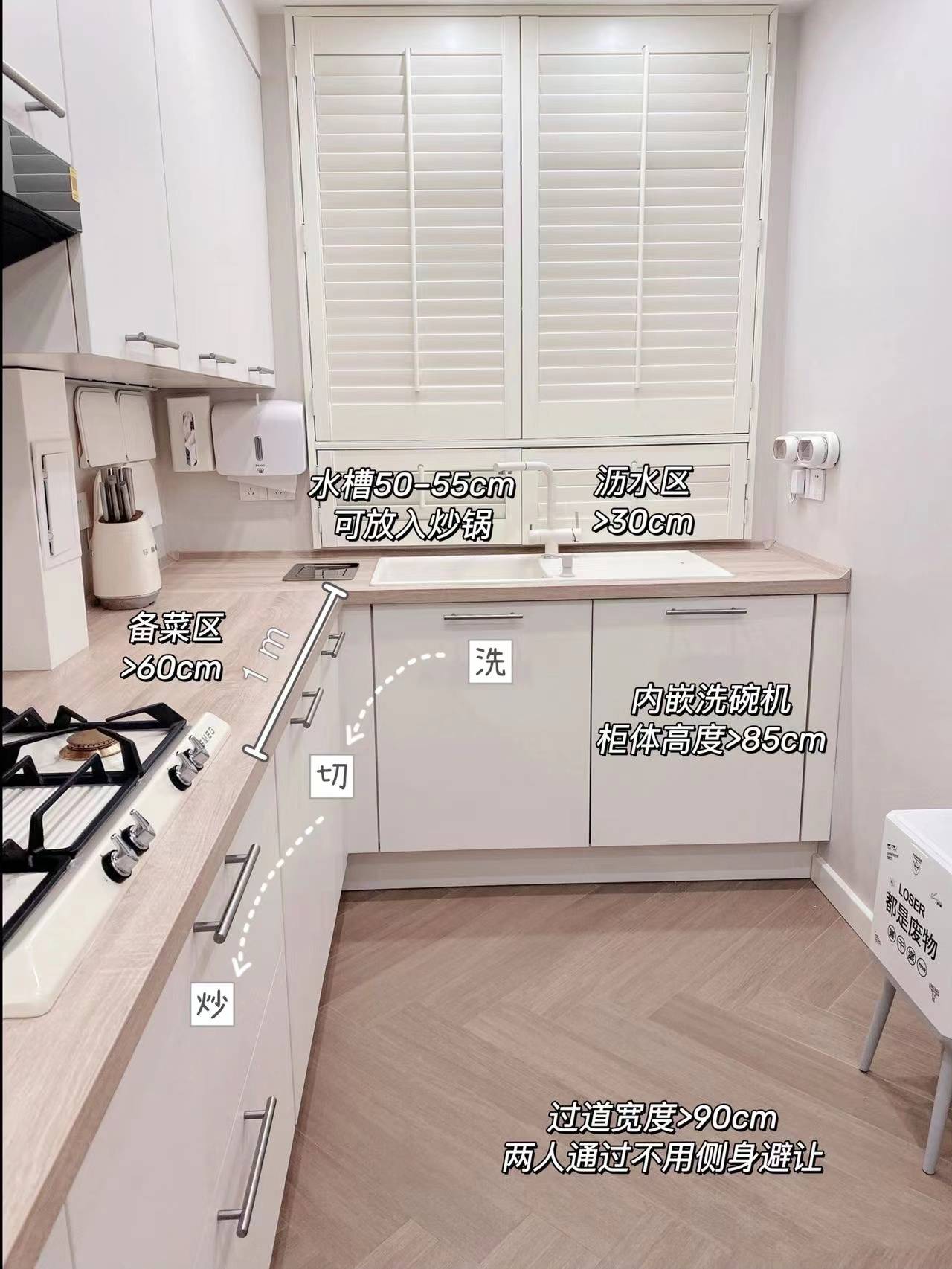 想做高低台面的姐妹,切菜和炒菜区域的高度可以在上述公式中减掉5-8cm。