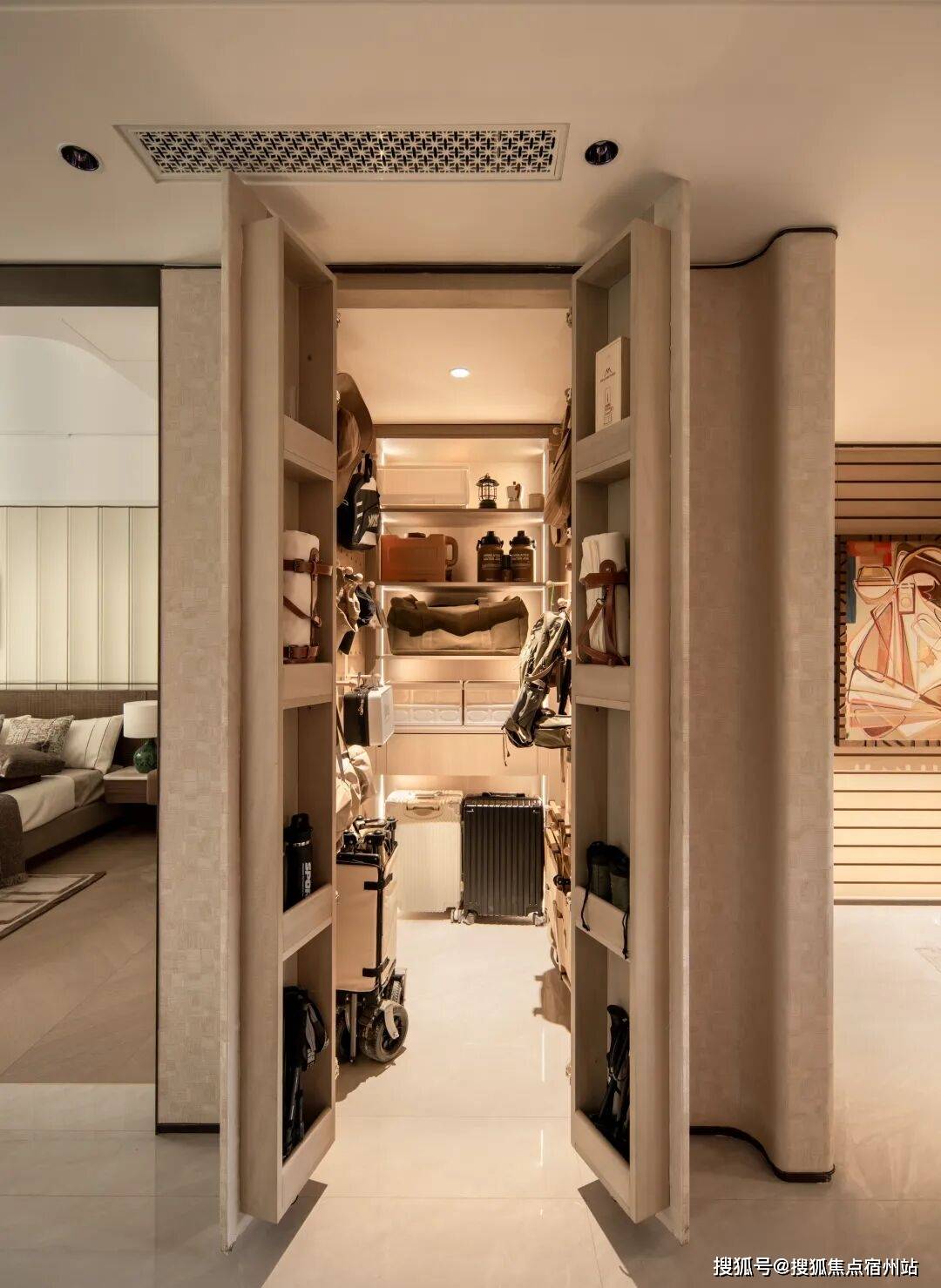 超深「800库设计」提供球具储存空间。满足豪宅业主存放高尔夫、网球等器具需求,行李箱、婴儿车等大件杂物也都安排得井井有条。