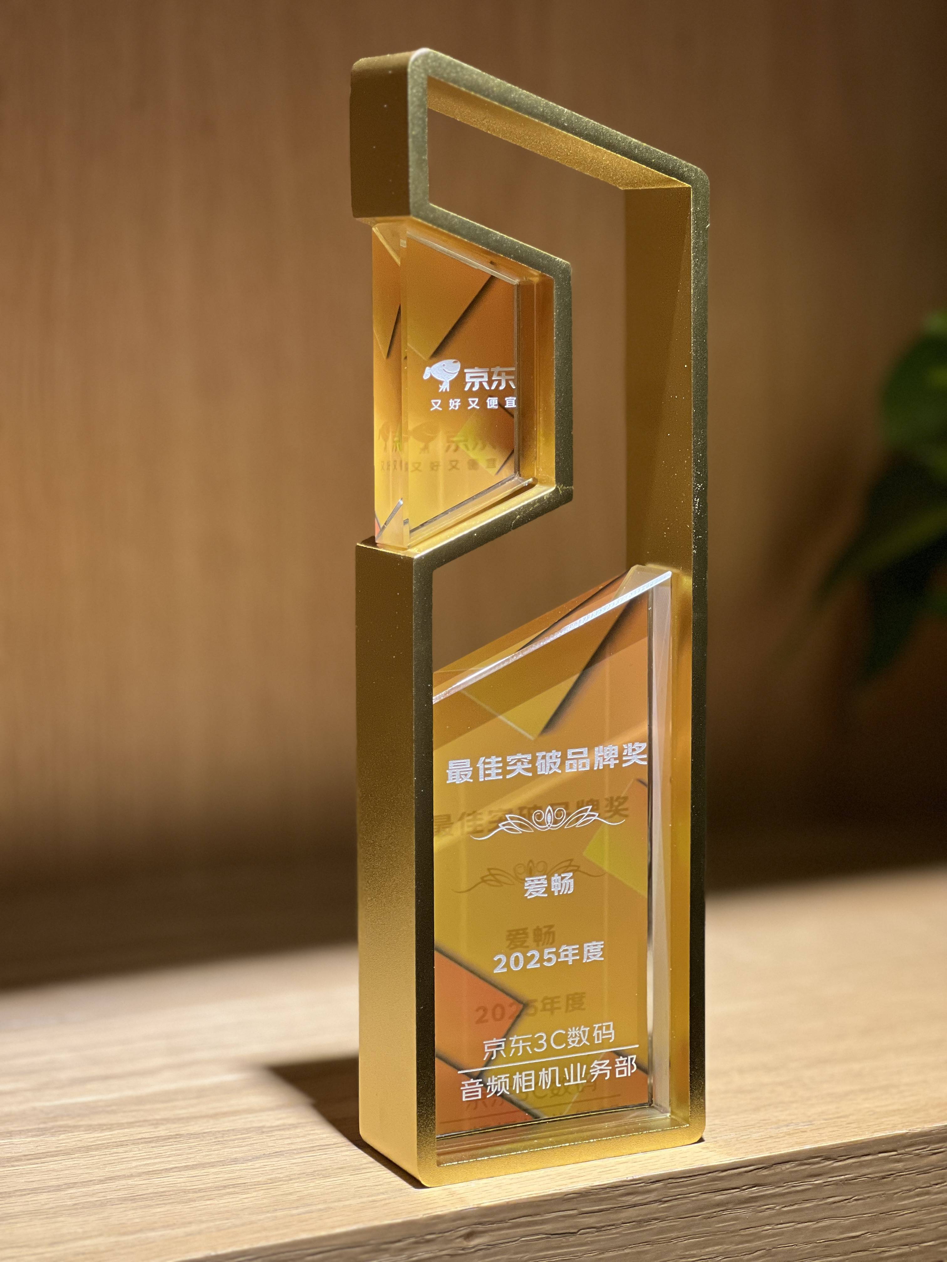 值得一提的是,爱畅始终致力于构建“硬件+内容+服务”的沉浸式生态 ,让产品成为连接人与音乐的情感纽带,这一商业逻辑不仅让爱畅在竞争激烈的影音硬件红海市场中开辟出全新价值蓝海,也与京东平台追求高品质、高创新、高体验的产品理念高度契合。此次获奖,既是京东平台对爱畅品牌突破创新的肯定,也是对双方携手为消费者打造更优质影音娱乐体验的认可。