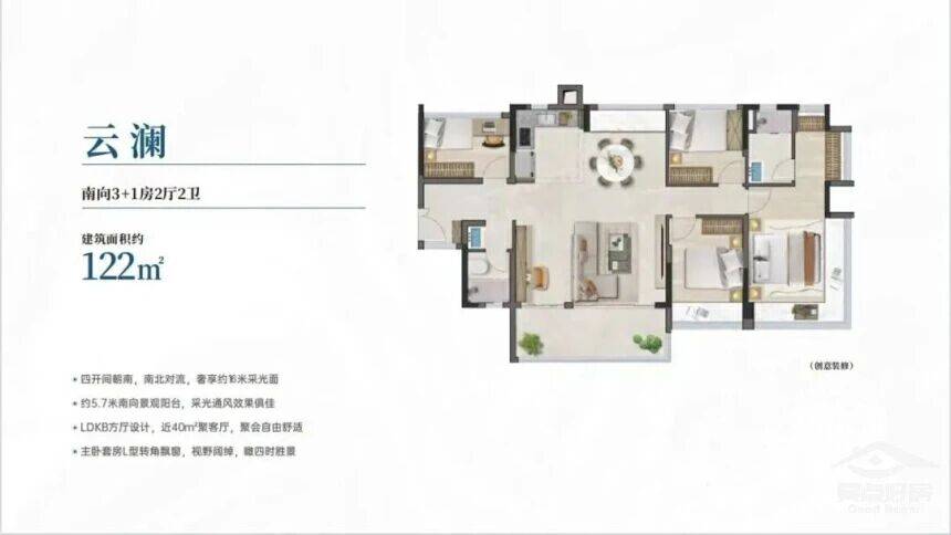 这两款户型的共同特点,就是“全南向”。广开云翰摒弃了传统的南北通但不纯南的设计,坚持让主要生活空间全部朝南。这种设计虽然对地块和规划要求极高,但却能带来最好的居住体验。在中国大部分地区,南向是最佳的朝向,冬暖夏凉,采光最佳。广开云翰的全南向户型,让每一户都能享受到平等的阳光权,消除了采光死角,提升了整体的居住品质。